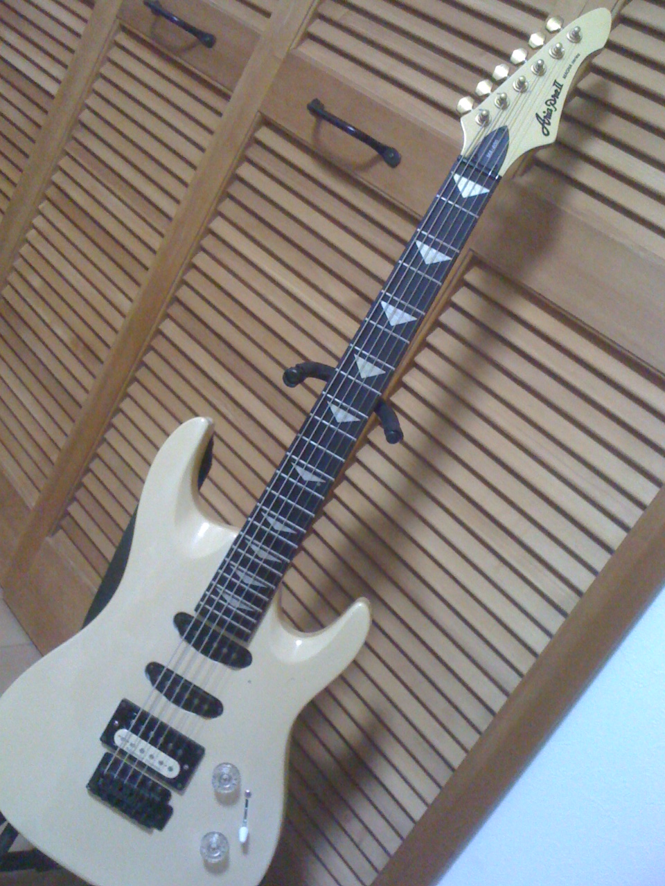 この状態で取れない?と思われるかも知れませんが表のナットを締めることでネックに対しての固定は出来てます。ネック裏のネジは保険みたいなもの?
