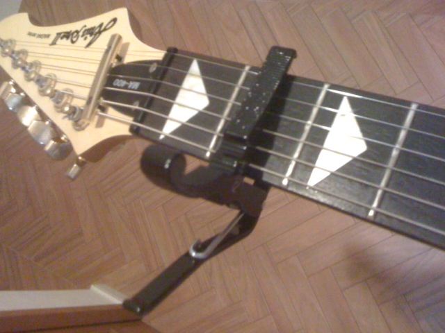 カポを装着するとテンションがきつくなります。たるかったテンションがいい硬さに早変わり。