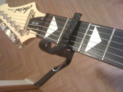 チューニングダウンに伴い、レギュラーチューニング曲対策として入手したのがKyserのカポでございます。¥1800くらいしてちと予算オウバです。