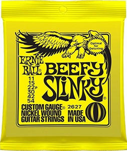 これでもレギュラーチューニングでは使えないほど硬いが、全弦1音下げ+6弦のみ更に1音下げ(ドロップC)にするとテンション的にはレギュラーゲージより足りなかったので、、、