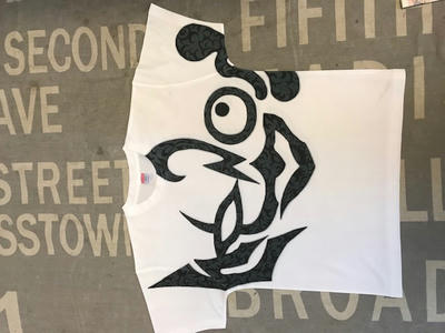 Tシャツペイントは以前にもやったことはあるが、紙などと違って繊維の向きがあるから、それを無視しては出来ない。なるだけその繊維のスジを味方にしないと。