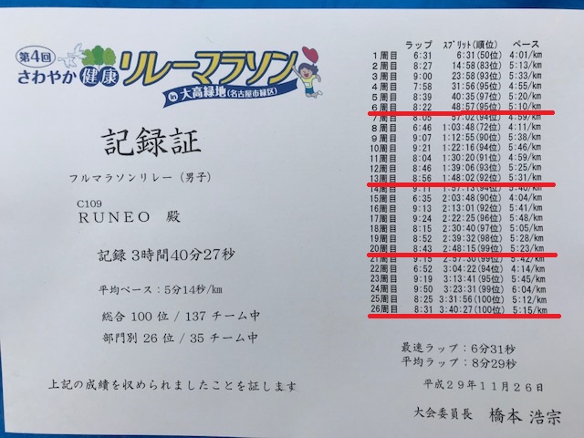本日のスコア 平均7:39(前回7:45)